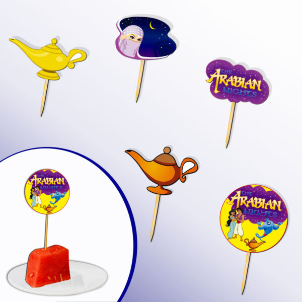 Description- Enjoy the yummy party snacks in your Arabian Nights theme kitty party with these cute and innovative Arabian Nights snack sticks designed especially for an Arabian Nights theme kitty party. These lovely snack sticks with cute cutouts of characters and motifs related to Arabian Nights like a magical lamp, a genie and the like pasted over snack sticks are a perfect way to make the snacks at the party appear more tempting. These cute Arabian Nights theme snack sticks are innovative party props that would give a special theme oriented touch to your Arabian Nights theme kitty party.