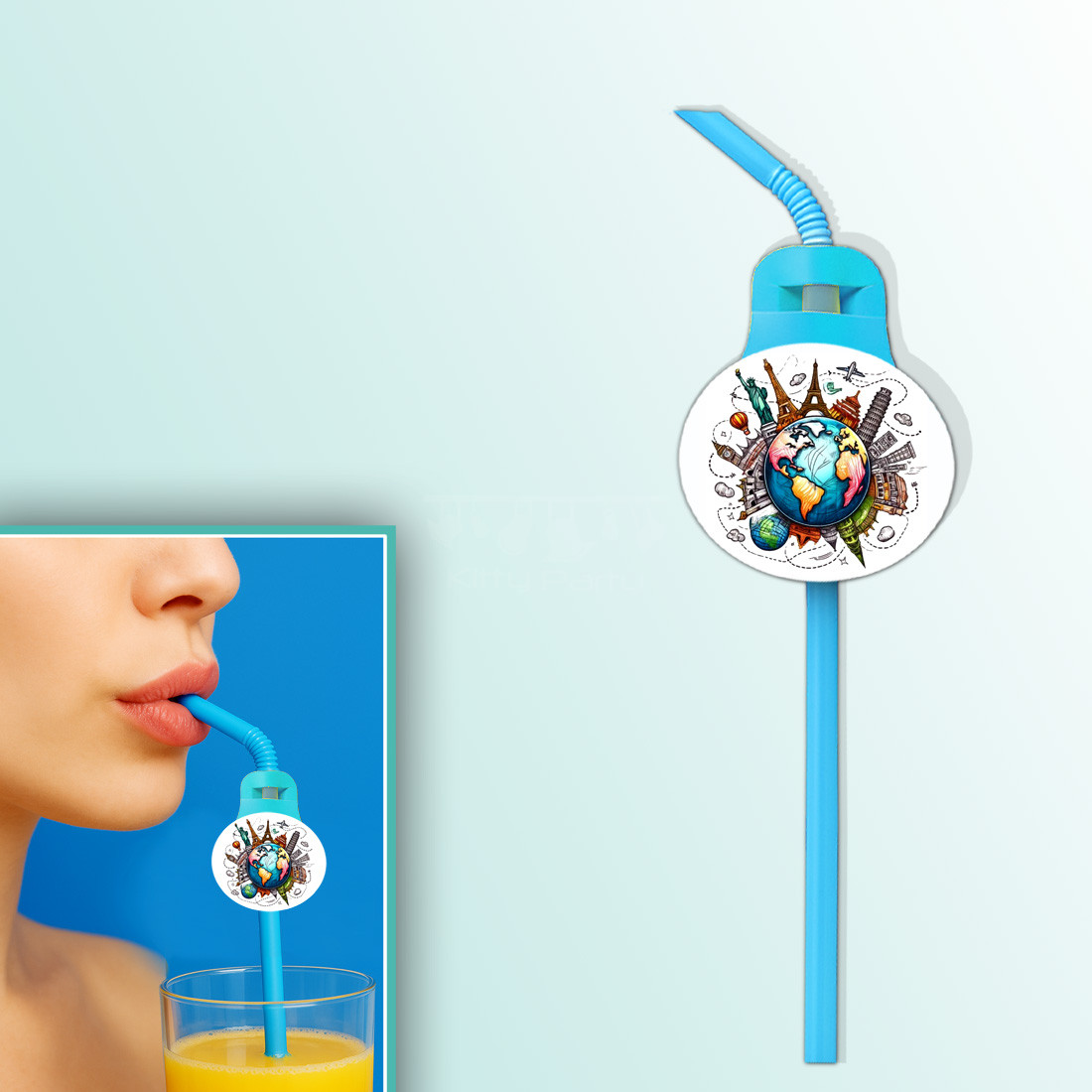 Around The World Theme Straw
