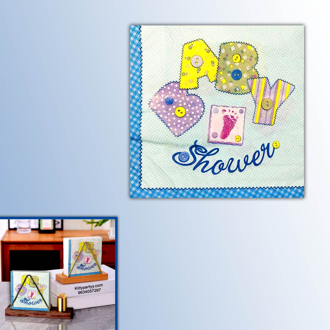 Use- These cute baby shower theme blue tissue papers could be used in your baby shower party’s lunch or dinner to give it a special theme related touch.