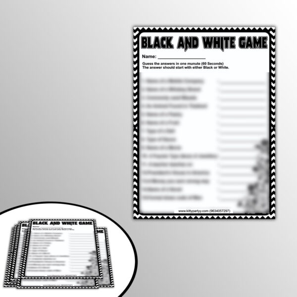 How to play- A super interesting way to add fun element to your black & white theme kitty party and light it up is by playing this innovative black & white theme paper game designed especially for the black & white theme kitty party.