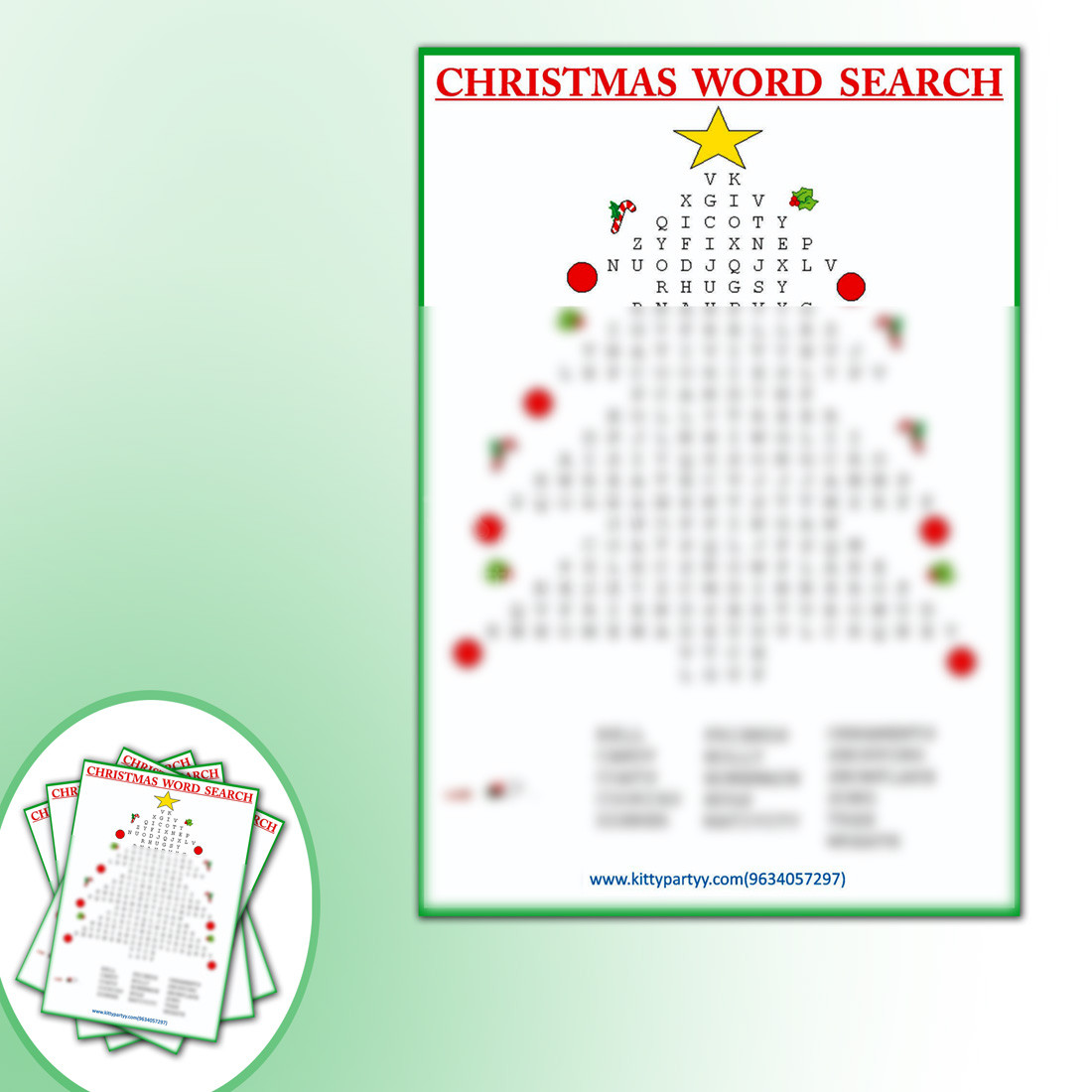 Word search is one of those games which everyone enjoys playing. So, make this special and innovative Christmas word search game a part of your Christmas theme kitty party and engage your guests in playing this fun game. In this one minute paper game each participant will be provided with one printed play sheet to play the game. Each play sheet has a grid of hidden words related to Christmas printed over it in the shape of a Christmas tree. Below the grid is the list of words that are hidden in the grid. These words are related to the festival of Christmas. The participants have to search these words related to Christmas in the grid and mark them. The one who gives the maximum number of correct answers will win the game.