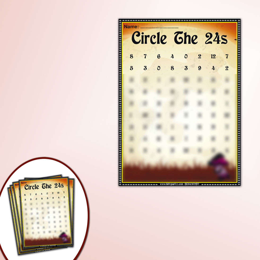 Over the printed play sheet numbers are printed randomly. Now the participants have to find pairs of numbers that are multiples of 24’s i.e. they form 24 when multiplied together and circle them.