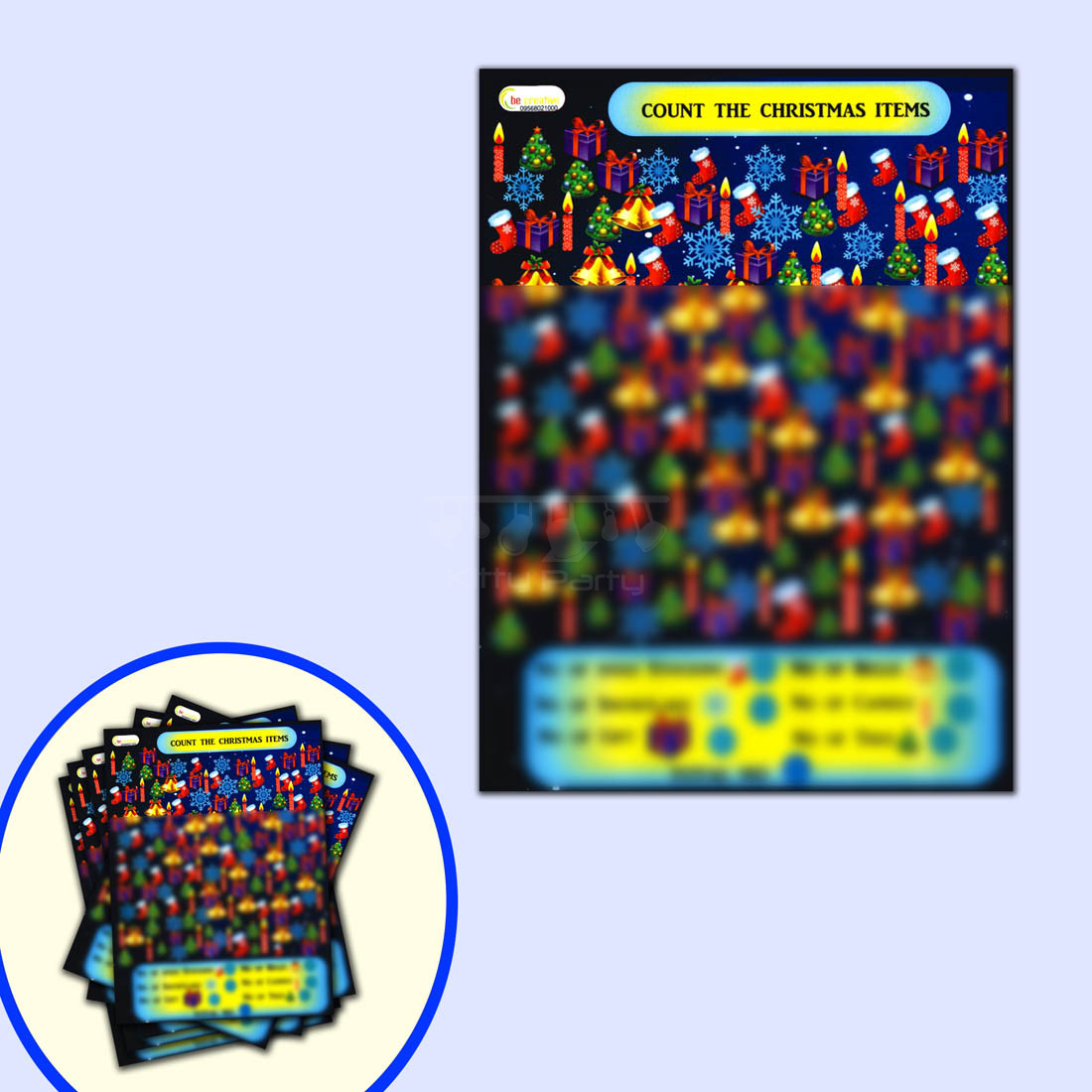 The festival of Christmas is coming near and there is great zeal among people to celebrate this joyful festival. This festive season make your Christmas theme kitty party full of fun and enthusiasm with this innovative count the Christmas items paper game. In this one minute paper game each participant will be provided with one printed play sheet to play the game. Each printed play sheet has some items related to Christmas printed over it in repeated fashion. These items include repeated pictures of candles, bells, gifts and the like. At the bottom of the play sheet there is a space given to write the total number of each of the items separately and then a separate column is given to write the collective total of all the items. The participants have to count each of the items and write their correct total number of each item in the space given on the bottom of the sheet. The one who writes the maximum number of correct answers in the specified time duration would win the game.