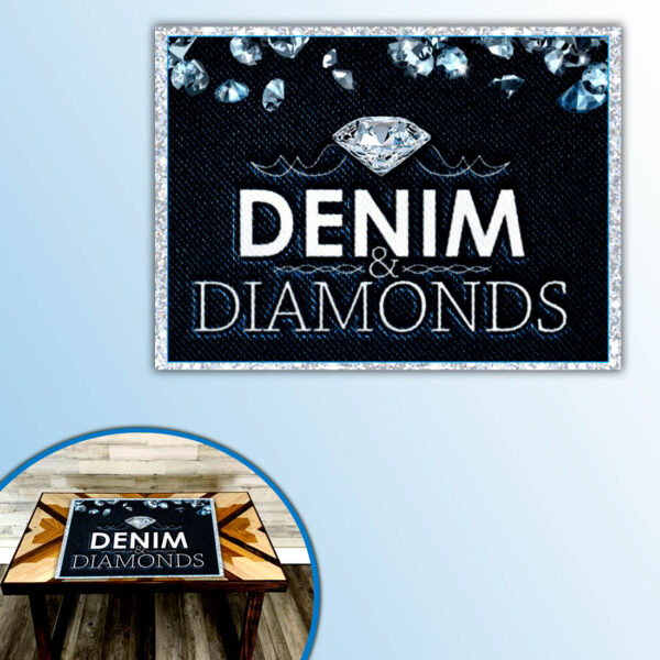 Items provided- Trendy looking Denim and Diamonds theme printed table mats (B) designed keeping a Denim and Diamonds theme kitty party in mind.