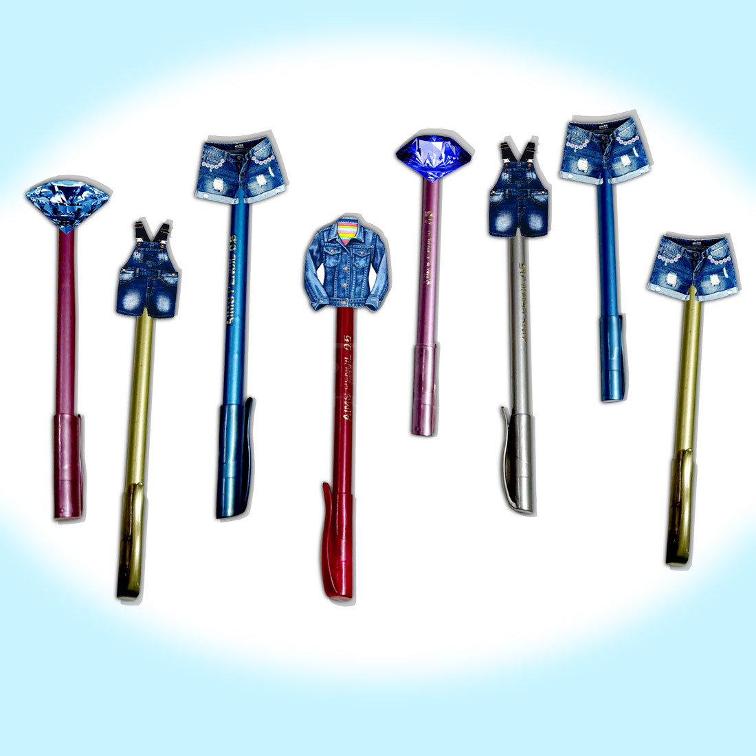 Description- Make your denim & diamonds theme kitty party really special and memorable for all your kitty mates by playing the paper games and tambola using these special denim & diamonds theme pens designed especially for a denim & diamonds theme kitty party. With cute cutouts related to the theme like denim shorts, diamonds and the like pasted over the lower ends of these pens, these denim & diamonds theme pens are sure to make your party more fun and more theme oriented.