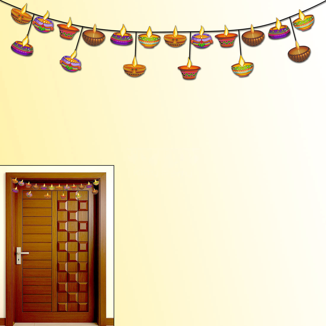 Description-Planning a Diwali theme kitty party and worried about the decoration part? You need not worry anymore as we have a perfect remedy to your problem with this extremely beautiful Diwali theme kitty party banner. This handmade banner has cutouts of colorful diyas assembled together in the form of a banner. It would look great and would go really well with the theme decoration. So, jazz up your party with this Diwali theme banner and make the party venue look even more theme oriented and beautiful with this exclusive Diwali theme banner.