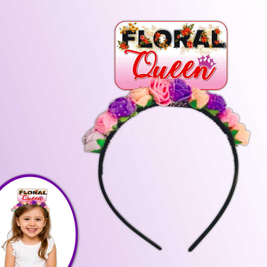 Description- Make your floral theme kitty party a special one for your kitty mates by making them wear these cute and lovely floral theme kitty party hairbands. These beautiful hairbands have cute little flowers pasted over them along with a printed ‘Floral Queen’ tag attached over the top. They work as perfect theme party props in a floral theme kitty party. These hairbands are made out of good quality and durable plastic and look lovely. They would definitely add more charm to your floral theme kitty party.