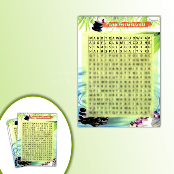 Participants will have to guess and search names of services offered by a spa in this word search square. The participant to find the maximum number of words in limited time wins.