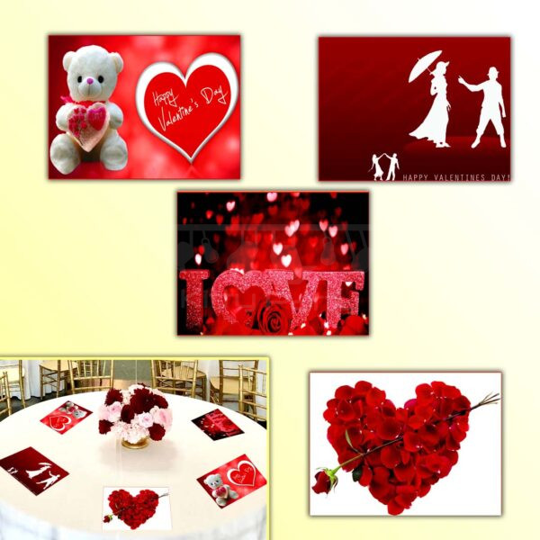 Items provided- Beautiful printed Happy Valentine’s Day table mats designed keeping a Valentine’s Day theme kitty party in mind.