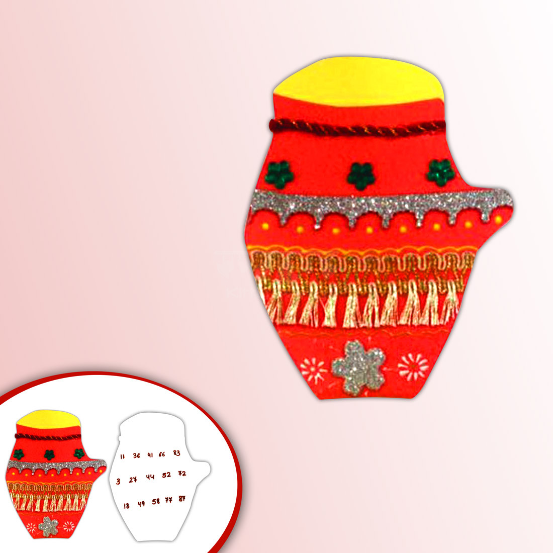 Description- Here comes the festival of karwachauth for which all the ladies wait eagerly. So, plan a special karwachauth theme kitty party and play tambola with these innovative and beautiful handmade karwachauth theme kitty party tambola tickets made in the shape of a karwa (pot). Not only are they beautiful but very unique too. The numbers are written on the back side of the ticket while the front is decorated beautifully.The karwa is of immense importance in karwachauth and these karwachauth tambola tickets in the shape of a karwa would make your karwachauth highly special this season.
