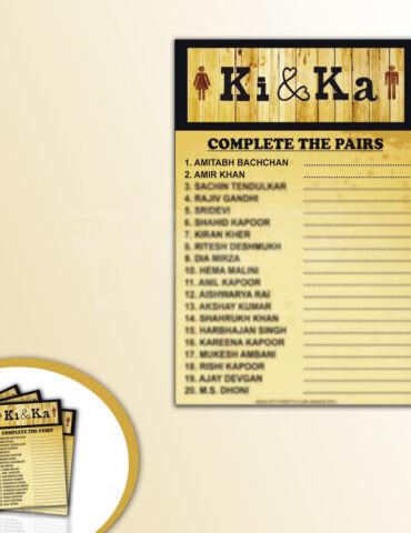 In order to play this unique Ki & Ka theme couple game all the couples would be provided with the printed play sheets in such a way that all the males would be provided with the blue sheets while the females would be provided with the pink play sheets. Now, over the play sheets the blue ones have interesting questions related to the wife that the husbands have to answer by writing or marking the correct option while the same would be done by wives on their pink play sheets as the questions over their sheets are related to their husbands. Both the members of the couple would answer these questions in the time limit set by the host. After that the host would ask all the couples to exchange their sheets and check their partner’s answers. The couple with the maximum number of correct answers would be the winner of the game.