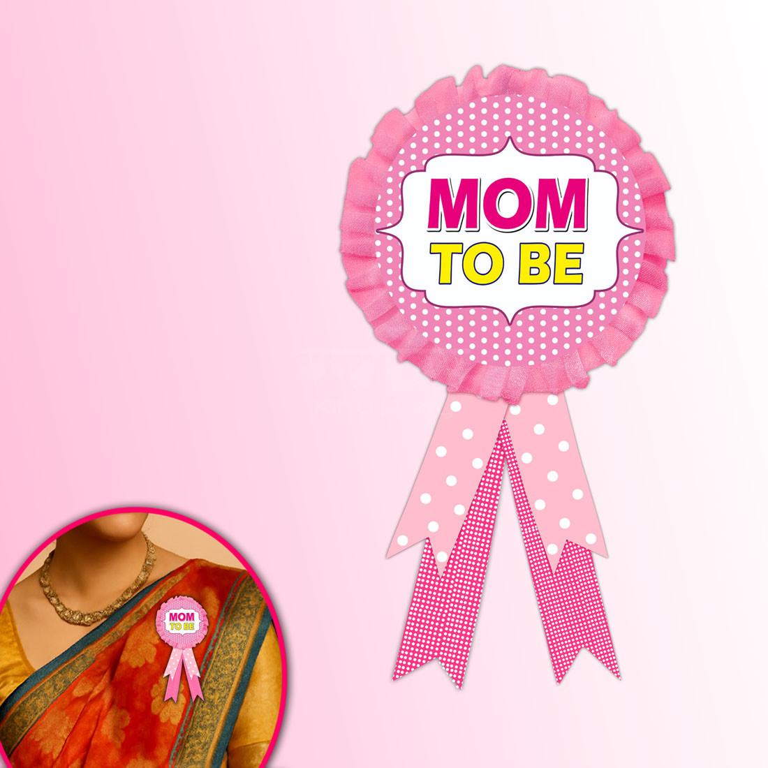 Items provided- A very cute pink colored handmade badge for the mom to be designed especially for a baby shower party.