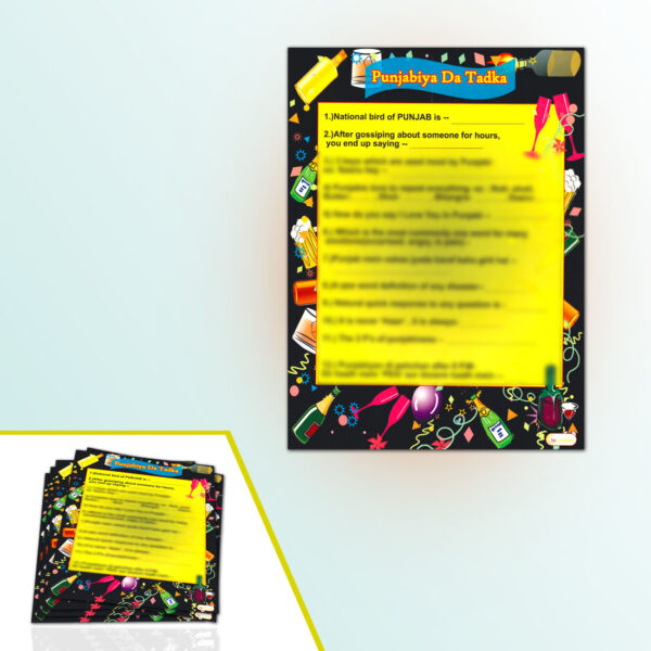 Bring in the Punjabi fun factor in your Lohri theme kitty party with this super fun Punjabiya da tadka paper game designed especially for a Lohri theme kitty party.