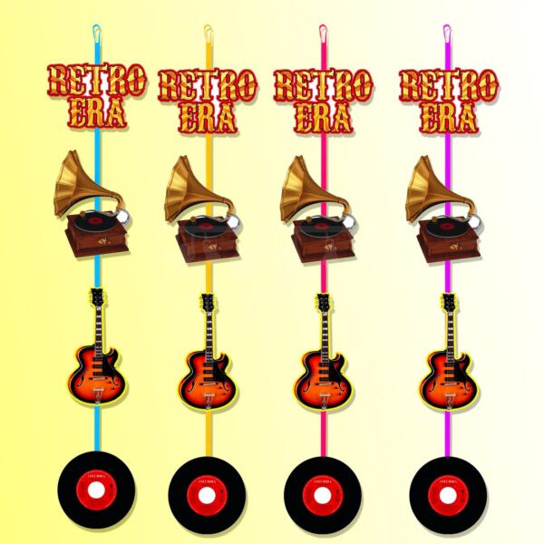 Description- Who can forget the golden Retro era? The dramatic movies and peppy Retro songs are still everyone’s favorite. So, to celebrate this Retro love if you plan to throw a Retro theme kitty party this time, don’t forget the decoration part. Keep the decoration of your party venue completely theme oriented with these beautiful handmade Retro era string decorations. With bright cutouts of motifs related to the Retro era assembled over a satin ribbon, these string decorations would just give a perfect Retro look to your party venue. So, make these Retro era string decorations a part of your Retro theme kitty party and add more fun to it.