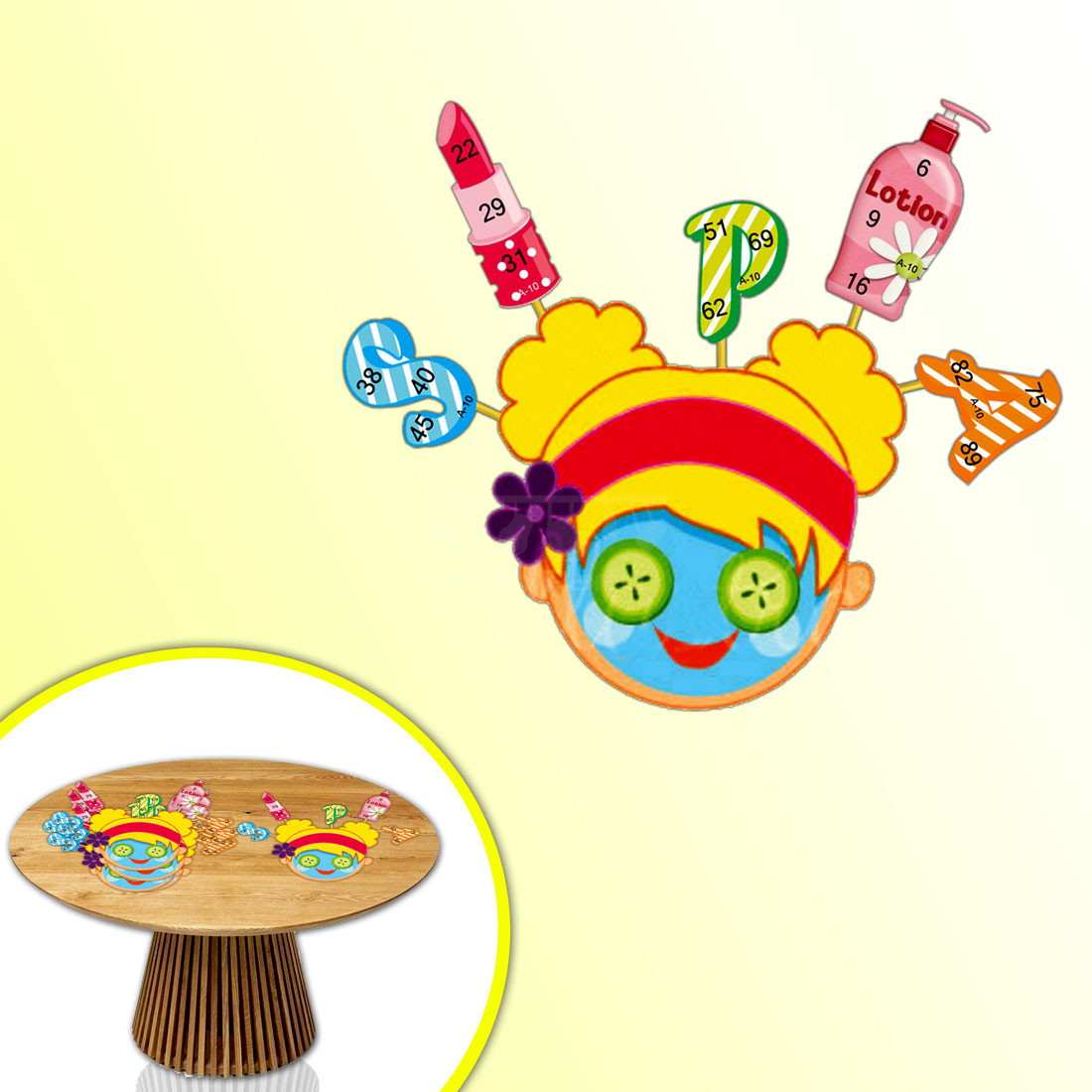 Description- Add some extra fun element to your Spa theme kitty party with these funky handmade Spa theme tambola tickets designed especially for a Spa theme kitty party. These innovative handmade tambola tickets are designed in such a way that there is a face cutout with a face mask applied that forms the center part of the ticket. Cute little cutouts of Spa related products are around it assembled together with the help of small sticks to give the tambola ticket a unique look. The word S-P-A too is spelled out in a colorful font and assembled along with the face cutout. The numbers are written over these cute five cutouts that are attached to the face. These tickets are just perfect for a Spa theme kitty party tambola and would surely make it more fun and entertaining.