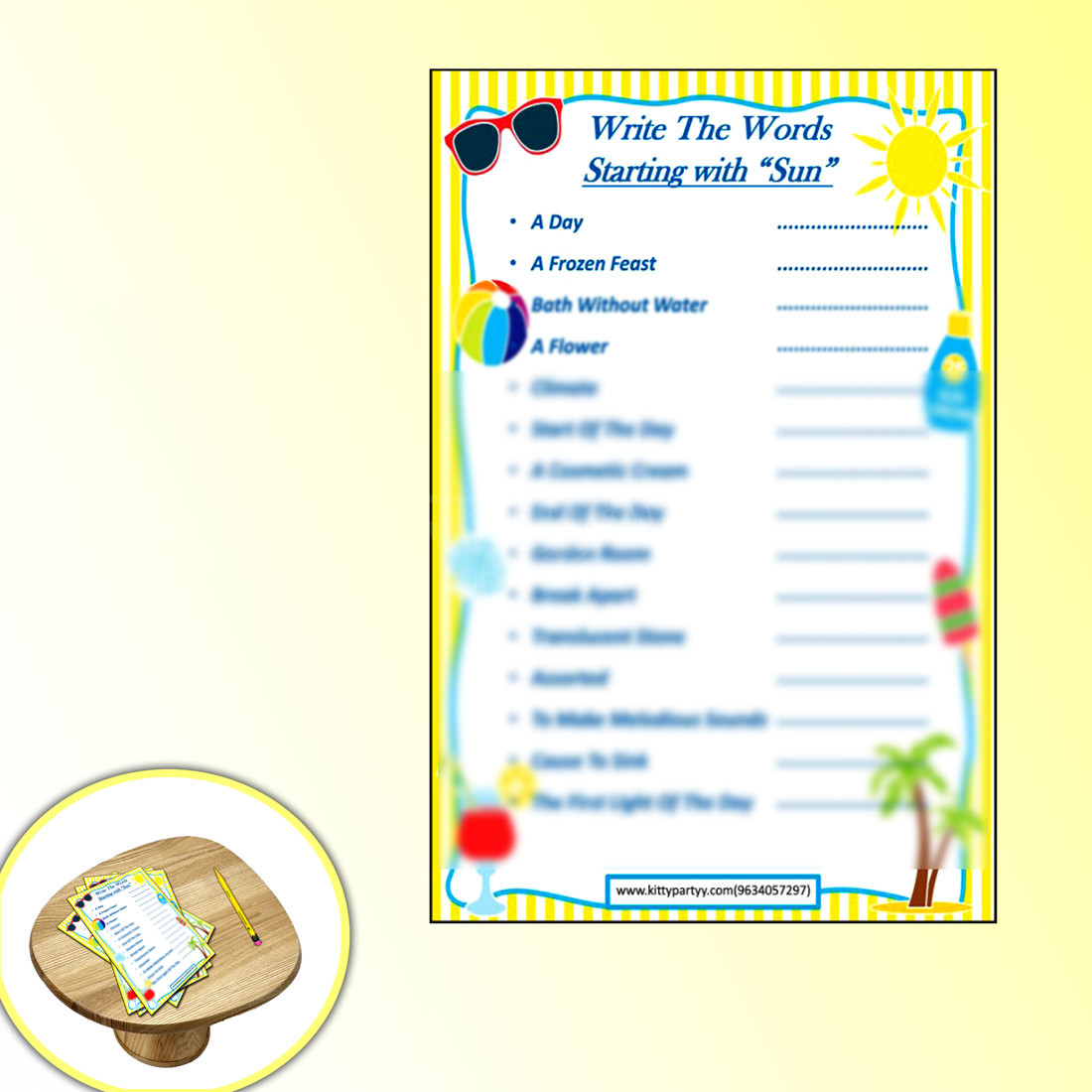 Tags: beat the heat, Kitty Party Game, one minute game, Summer Theme, Summer Written Game, sun, Written Game