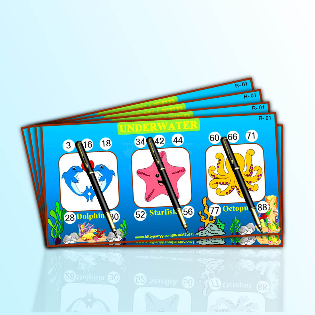 Items provided- Special printed under water theme tambola tickets created especially for an underwater theme kitty party.